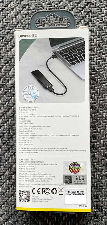 디자인 때문에 알리에서 구입한 베이스어스(Baseus)의 USB Type-C NVMe SSD 케이스(SSD Enclosure)의 개봉기, 간단 사용기(사용후기)