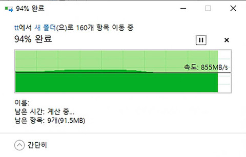 용량이 크지 않아서 복사하는 시간은 그리 큰 차이는 나이 않는 편이지만 두 제품의 최대 전송속도는 차이가 나는 모습을 볼 수 있었습니다.