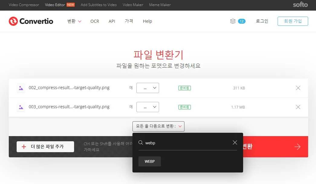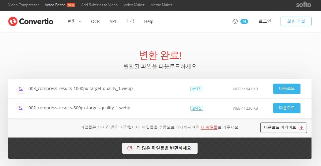 이미지 포맷의 변환 프로세스가 완료되면 변환된 파일을 다운로드 받을 수 있는데 전체 파일을 한 번에 다운 받을 수 있고, 변환이 진행 중일 때에는 개별로 파일을 다운로드 받을 수도 있습니다.
