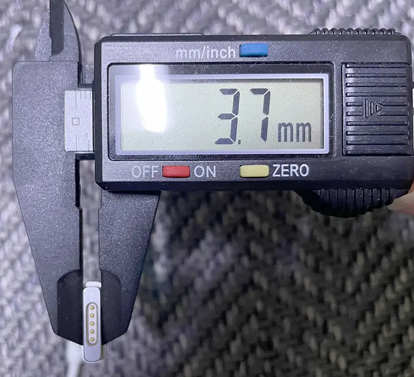 맥북에 연결되는 맥세이프 단자 부분의 경우 두께는 3.6mm로 정품의 3.7mm에 비해 0.1mm 얇은 두께를 가지고 있습니다.