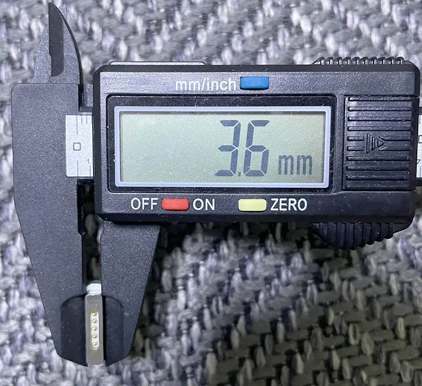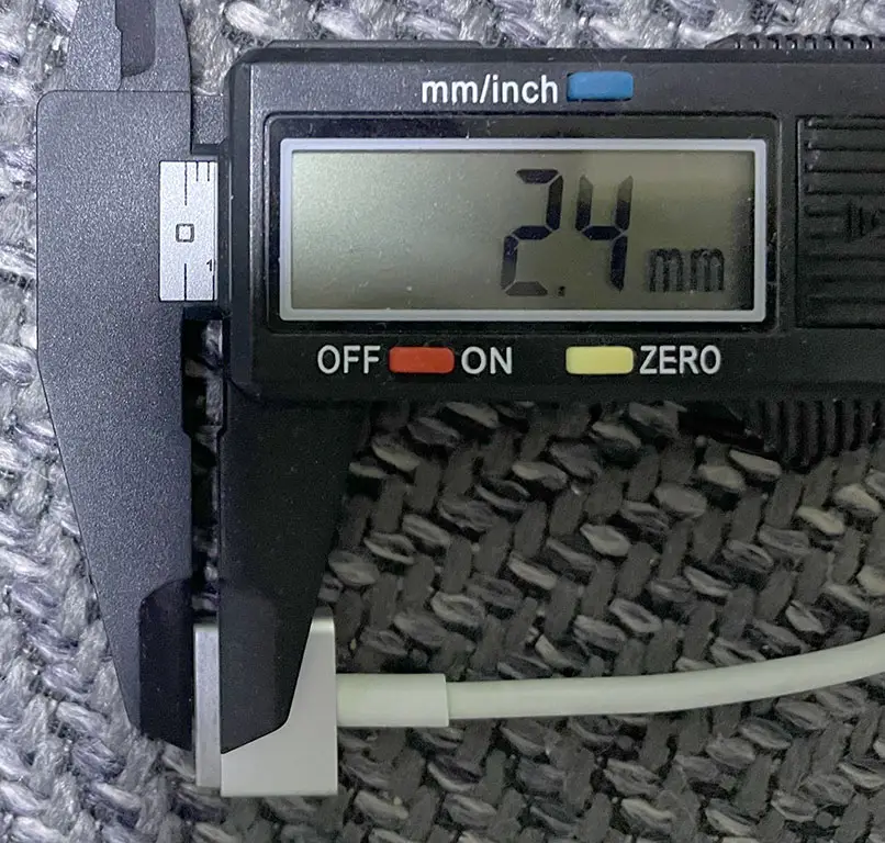 자석이 있는 단자 부분의 길이는 2.4mm 길이의 정품 맥세이프2 단자보다 0.5mm가 긴 2.9mm를 가지고 있습니다. 리뷰에서 이야기하겠지만 정품에 비해 긴 길이로 인해 살짝 아쉬운 부분이 있습니다.